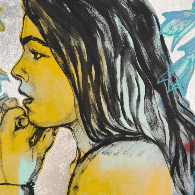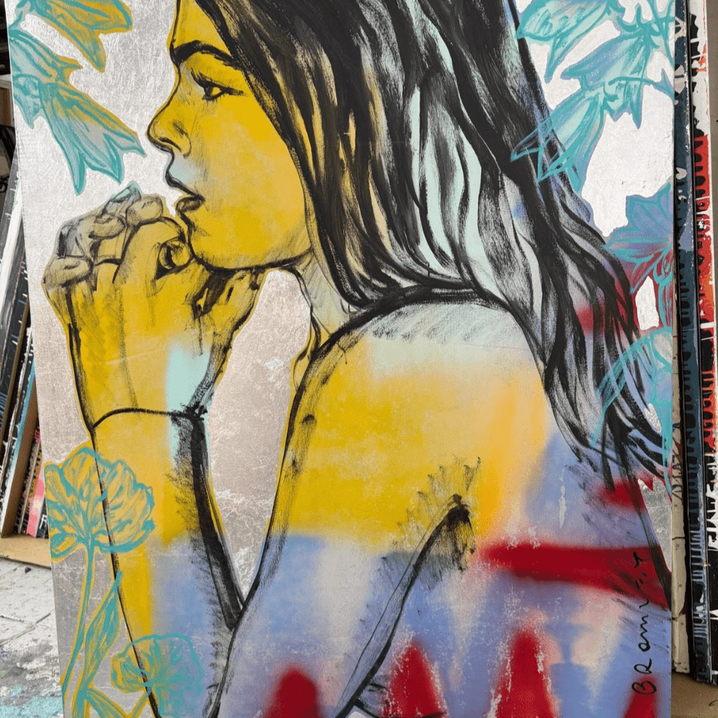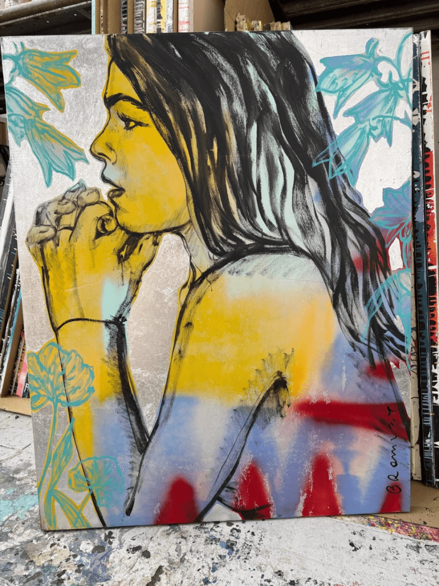 Acrylic on canvas with silver leaf