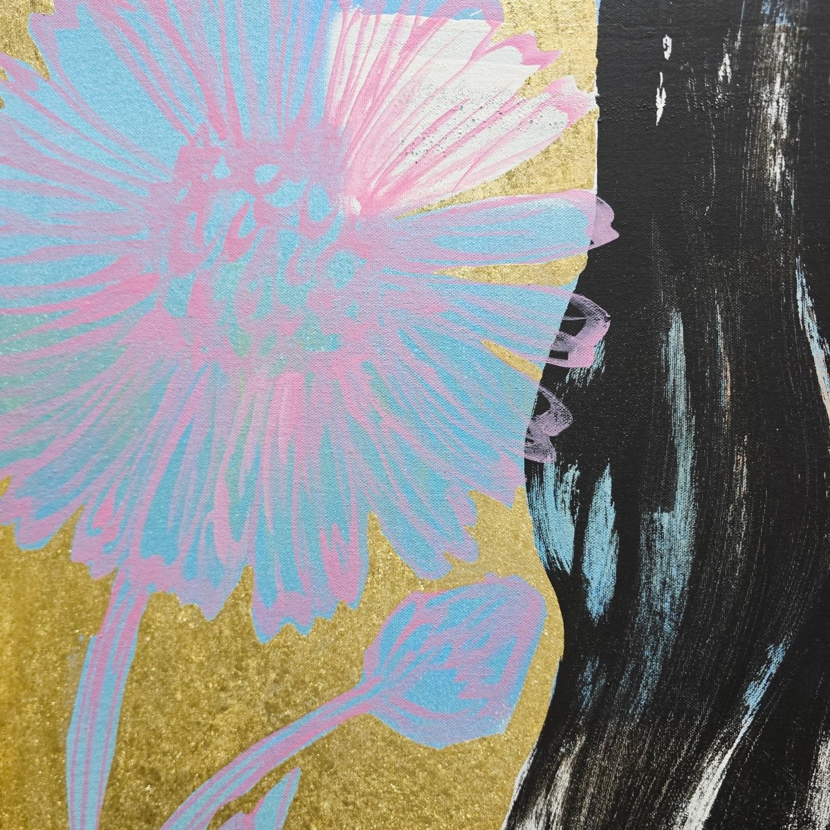Acrylic on canvas with gold metal leafing