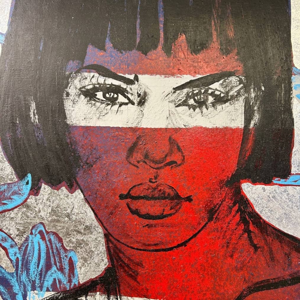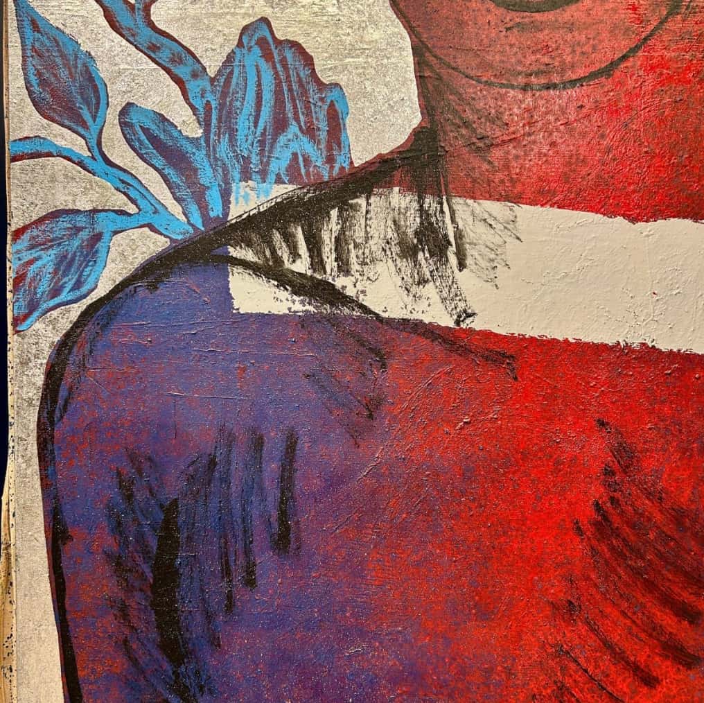 Acrylic on linen with Silver Metal Leaf Gilding - 160 x 112cm. This work is situated at our South Yarra Gallery.