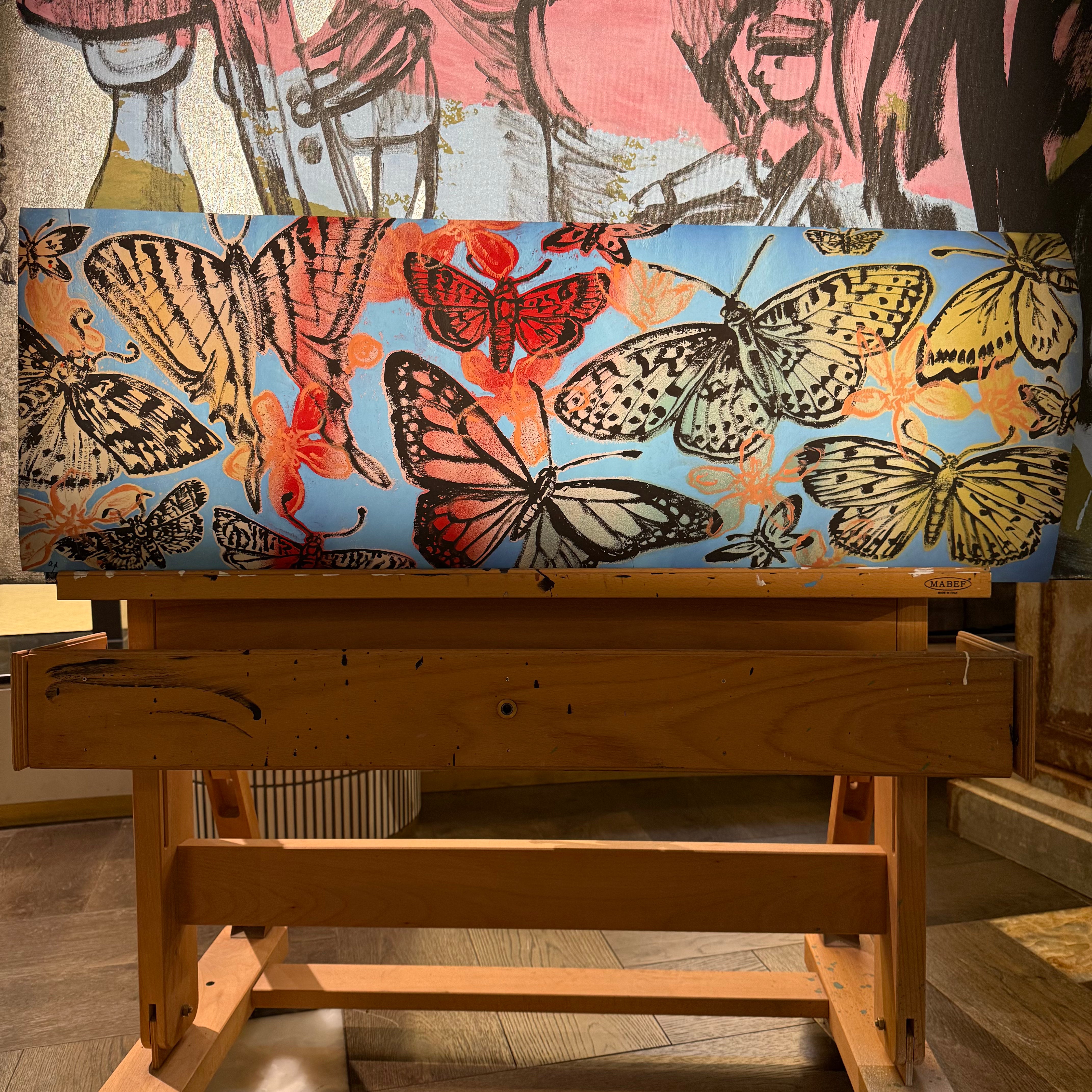 49. PRE-ORDER 'Butterflies on Blue' David Bromley. High pigment print. 50 x 110cm